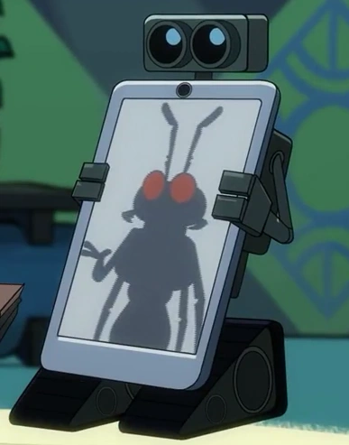 Howie is a cockroach with red eyes, a deep voice, and he has a robot carrying his phone.