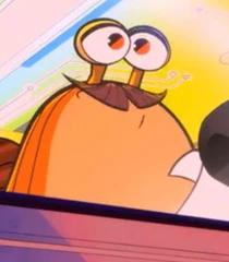 Mel is a chubby yellow snail with a brown shell and an orange eye color. He also sports a brown mustache, making him one of the few snails in the series with hair.